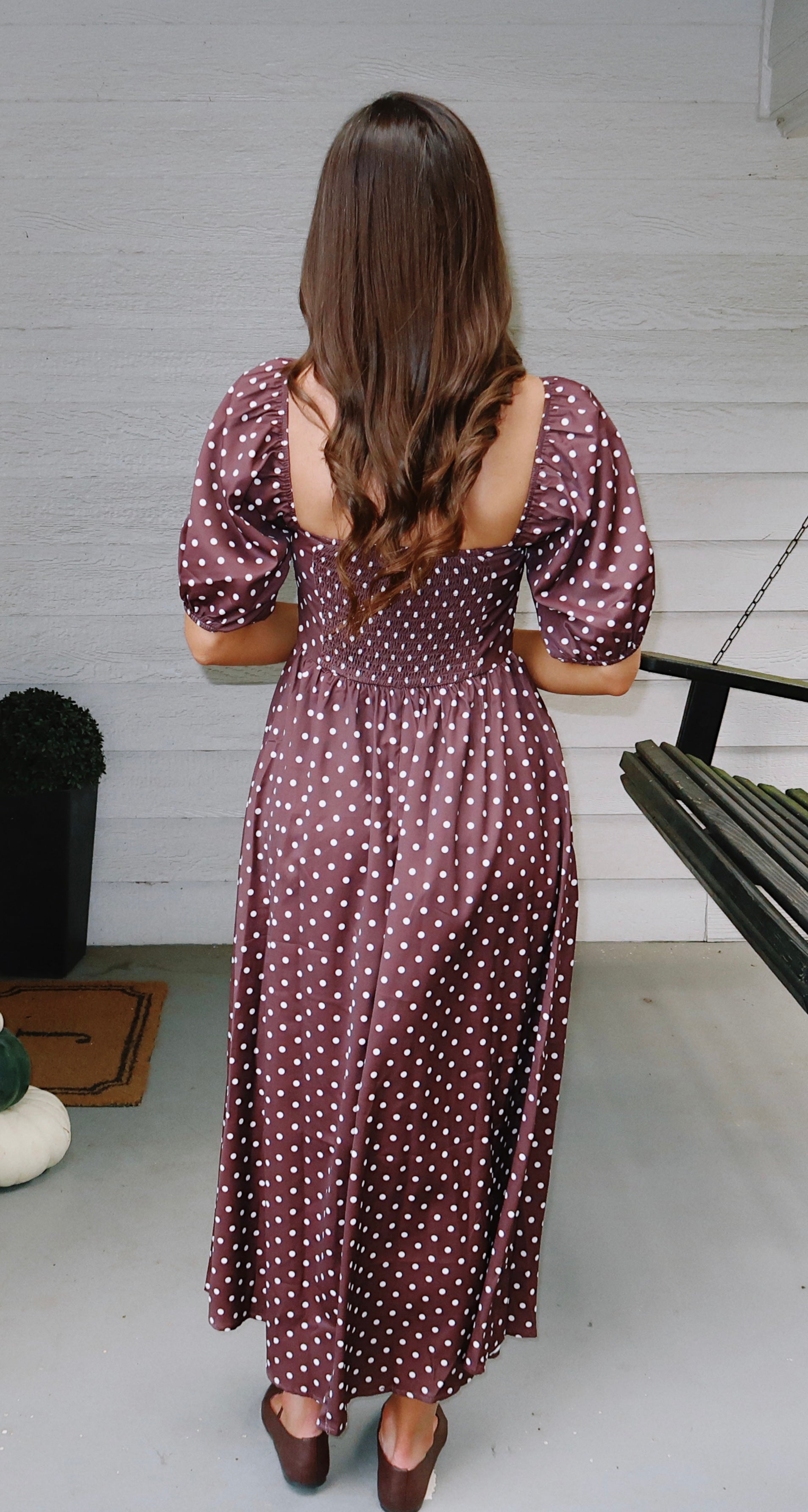 The Jane dress is adorable and so trendy for fall! Perfect for date night, family photos, work, or any occasion, this polka dot dress is a necessity. Brown is such a trending color, and polka dots are such a trending pattern; yet it is so timeless and classy. Pair with brown flats, white heels, or sneakers!